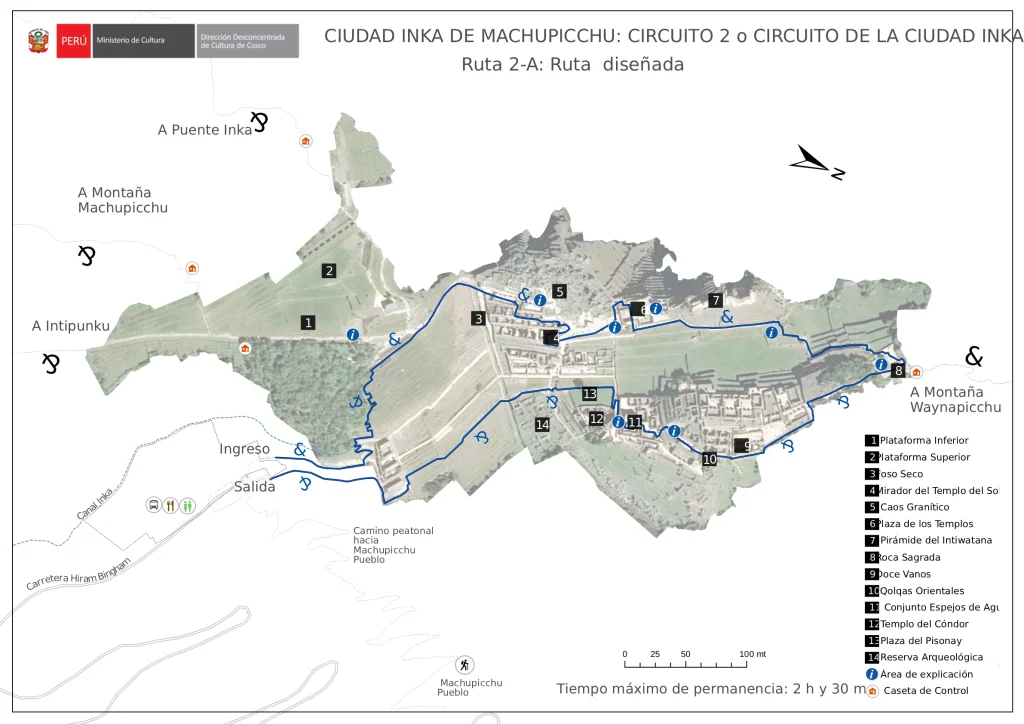 - Circuit 2A traditionally was the most popular with day trippers, as this Circuit explored the most sites of the ruin and includes the best views from the Guardhouse. The sites that Circuit 2 includes are Temples, Plazas, The Sacred Rock, Temple of the Condor and the Pisonay Plaza, to name a few.