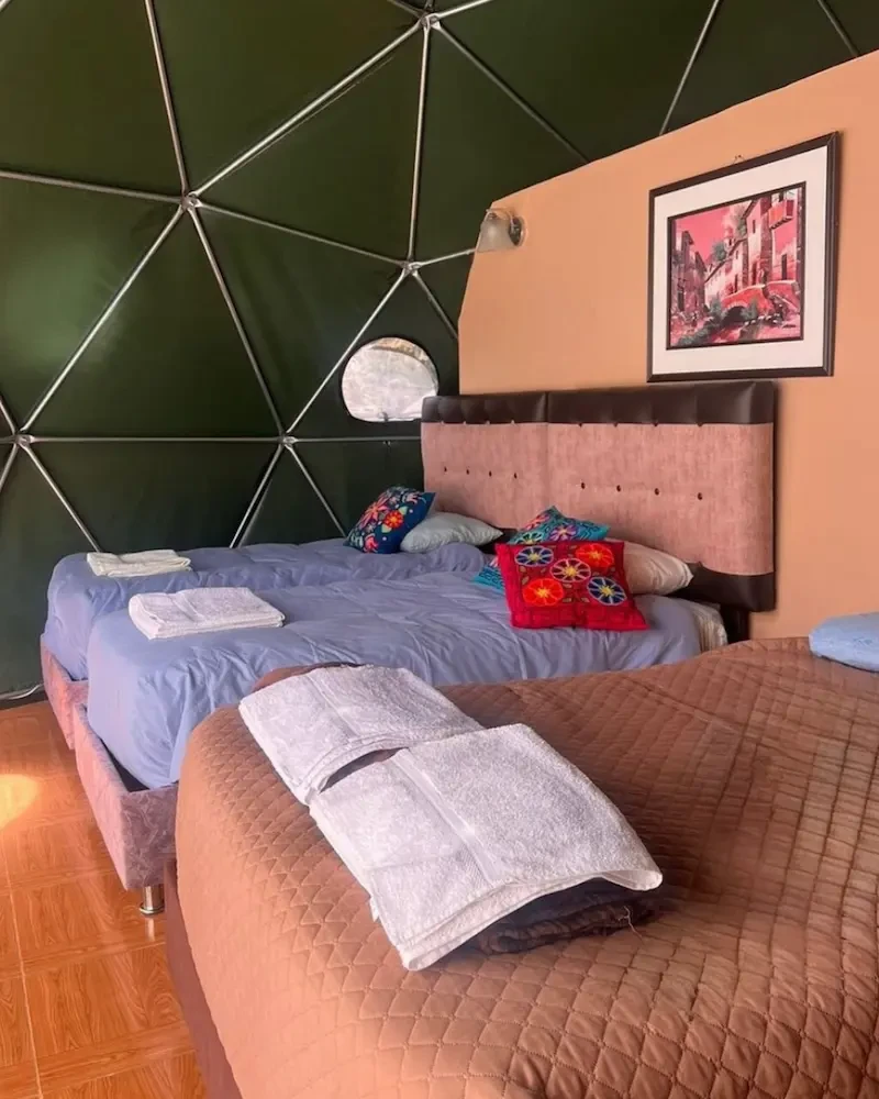 Exclusive domes with a panoramic view of the valley, sauna, jacuzzi and amenities like a 3-star hotel.