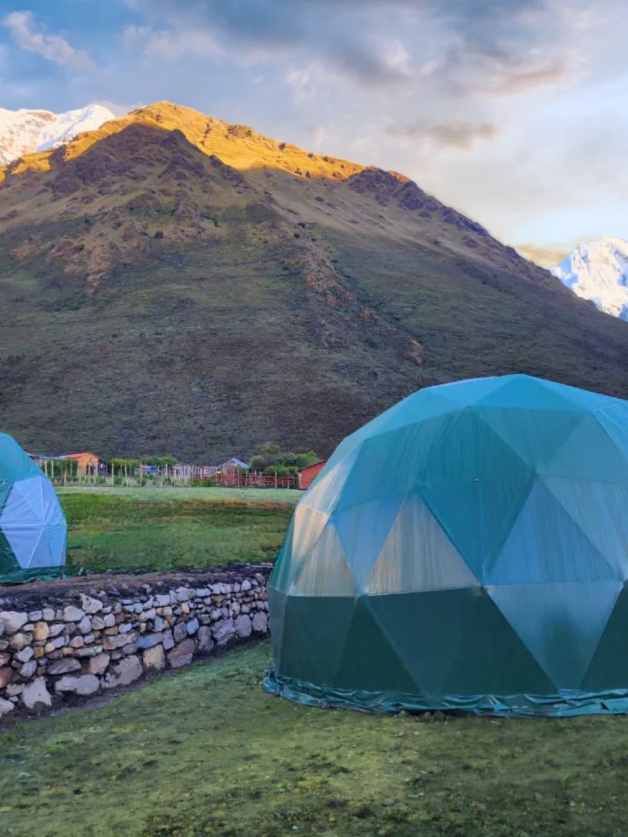 Enjoy your time in the mountains while walking over the Humantay lake, passing thorugh the Salkantay Pass and decesding to the lush valley in Cusco and finally getting to Machu Picchu. With us, you can have the the real experience of a glamping overnight campsite. First night, enjoya your night in Soraypampa exclusive dome, the, visit Collpapampa dome campsite for a great view and comfortable night. Dinally end your travel experience with a exclusive 3-star hotel in Aguas Calientes.